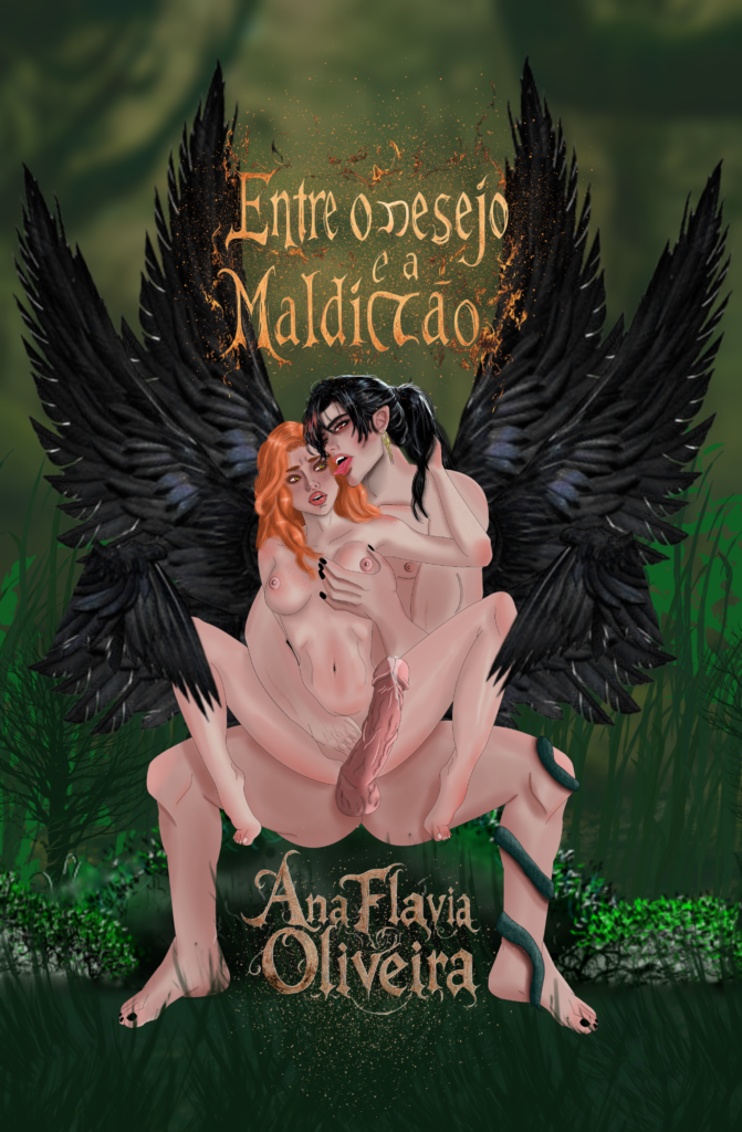 Seus dedos apertam, massageiam, pressionam e brincam deslizando na minha pele molhada com facilidade, eu vou enlouquecer. Passo meus braços para trás segurando seu pescoço, com o corpo arqueado e as pernas completamente abertas que ele ainda segura com suas asas. Sua outra mão que está em minha cintura desce minha camisola e aperta meus seios e brinca com o bico os fazendo ficar saltados e duros.